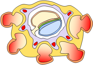 och bildar en massa som omger fostret. I denna massa finns hålrum kallade