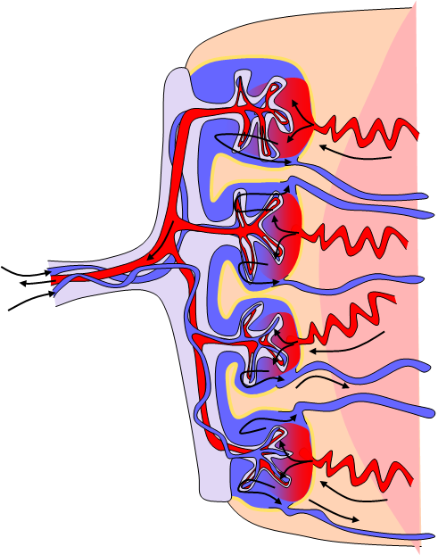 Det är genom att bada i moderns syre– och näringsrika arteriella blod från pölarna som fostrets blod blir syresatt och får näring.