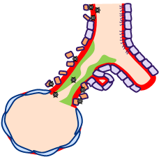 Ödematös , inflammerad bronkiolvägg med nekrotiserat epitel och slembildning. Ger total ocklusion av små luftvägar med atelektasbildning eller hyperinflation.