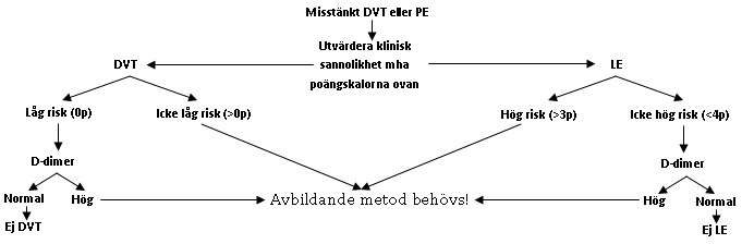 95% av patienterna utan LE har normal D-dimer. 90% av patienterna med låg klinisk misstanke om LE som inte har LE har också normal D-dimer.