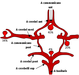 och då i bifurkationer mellan stora kärl. 20-30% har multipla aneurysm.