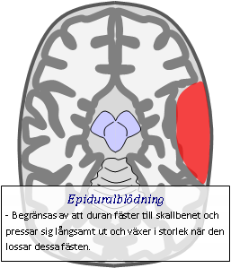ger medvetandesänkning (efter ett intervall med vakenhet) och ofta förstorad pupill + unilateral huvudvärk. Större hematom ger koma, stupor och hemipares. Symptom uppstår oftast inom 3 dygn efter traumat.