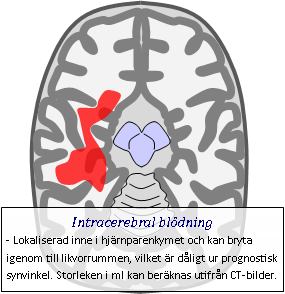 80% i storhjärnan (50% i basala ganglier, 15% i thalamus). 10% i lillhjärna, 10% i hjärnstam.