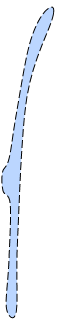 ger lökformat bortfall kring munnen och näsan vid skador på nucleus, där skador längre ned ger mindre cirklar med bortfall.